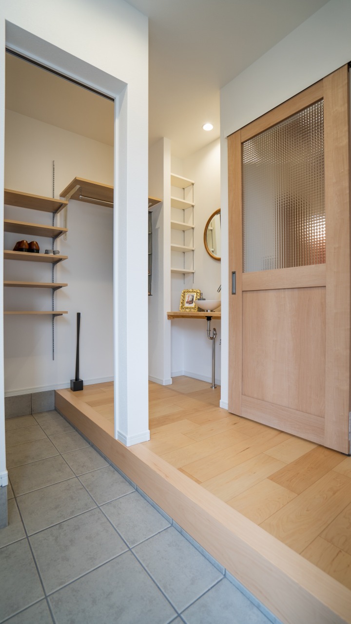 物が散乱しない2WAY玄関<