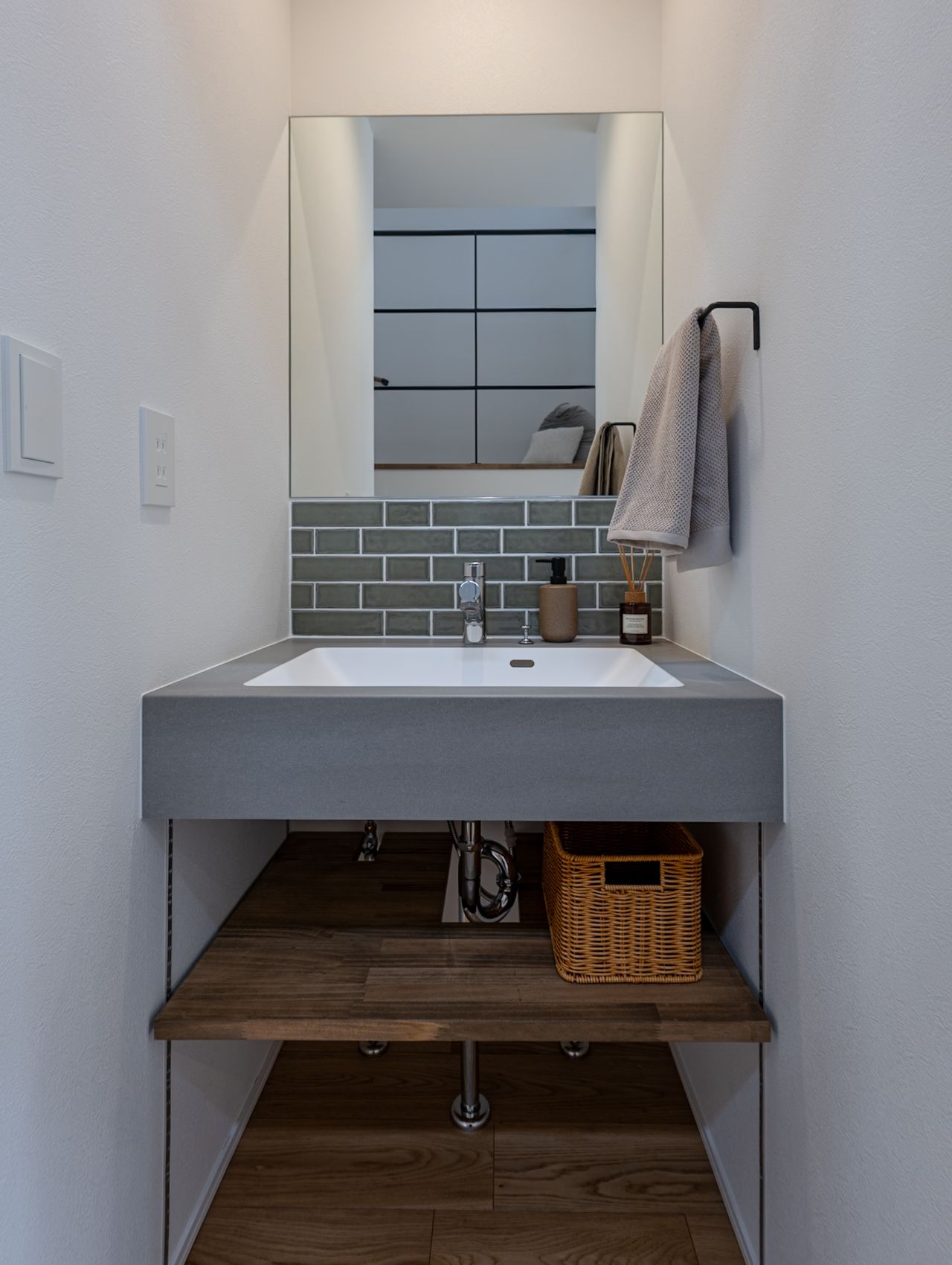 素材選びから寸法まで、ひとつずつ丁寧に仕上げた造作洗面。
